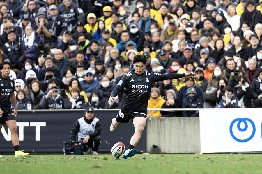 前半は開幕戦らしく、互いにやや硬さを感じさせる立ち上がりとなった。ラインアウトなどでのレフリングへのアジャストにやや時間を要し、互いの陣地をボールが行き来する。スコアが生まれたのは前半22分。BR東京が22m内で得たスクラムでサイドアタックを繰り返すと、東京SGにノットロールアウェイ。SO中楠一期がPGを成功させ3-0とする。