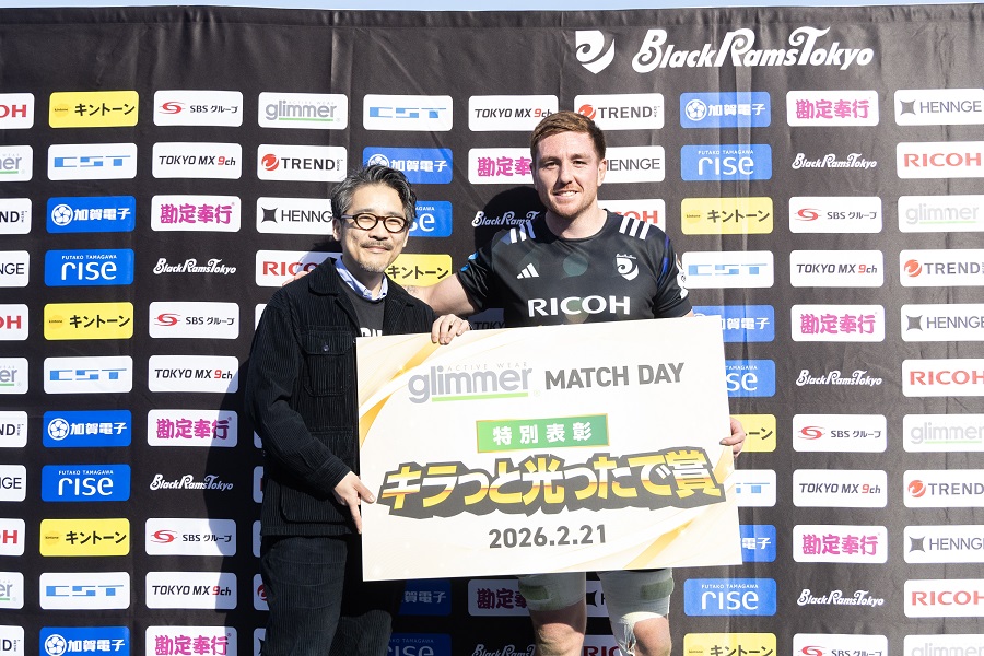 この試合はトムス株式会社の協賛による「グリマーマッチデー」として開催した。試合終了後には、トムス株式会社より特別表彰を実施。「キラッと光ったで賞」には、アタックではリンクプレーで、ディフェンスではアグレッシブなタックルで魅せたFLマクカランが選ばれた。