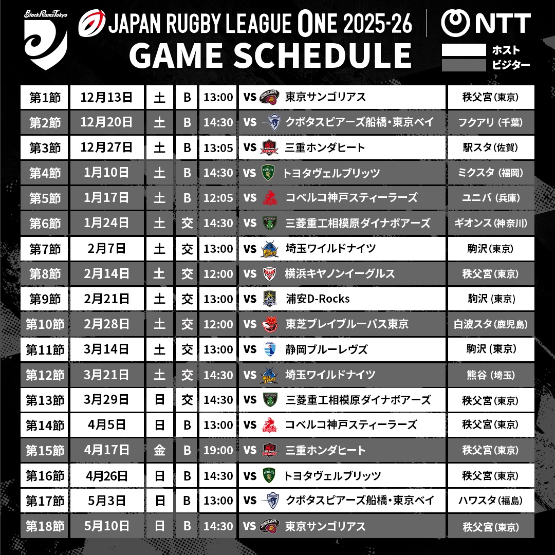 NTT JAPAN RUGBY LEAGUE ONE 2025-26 試合日程