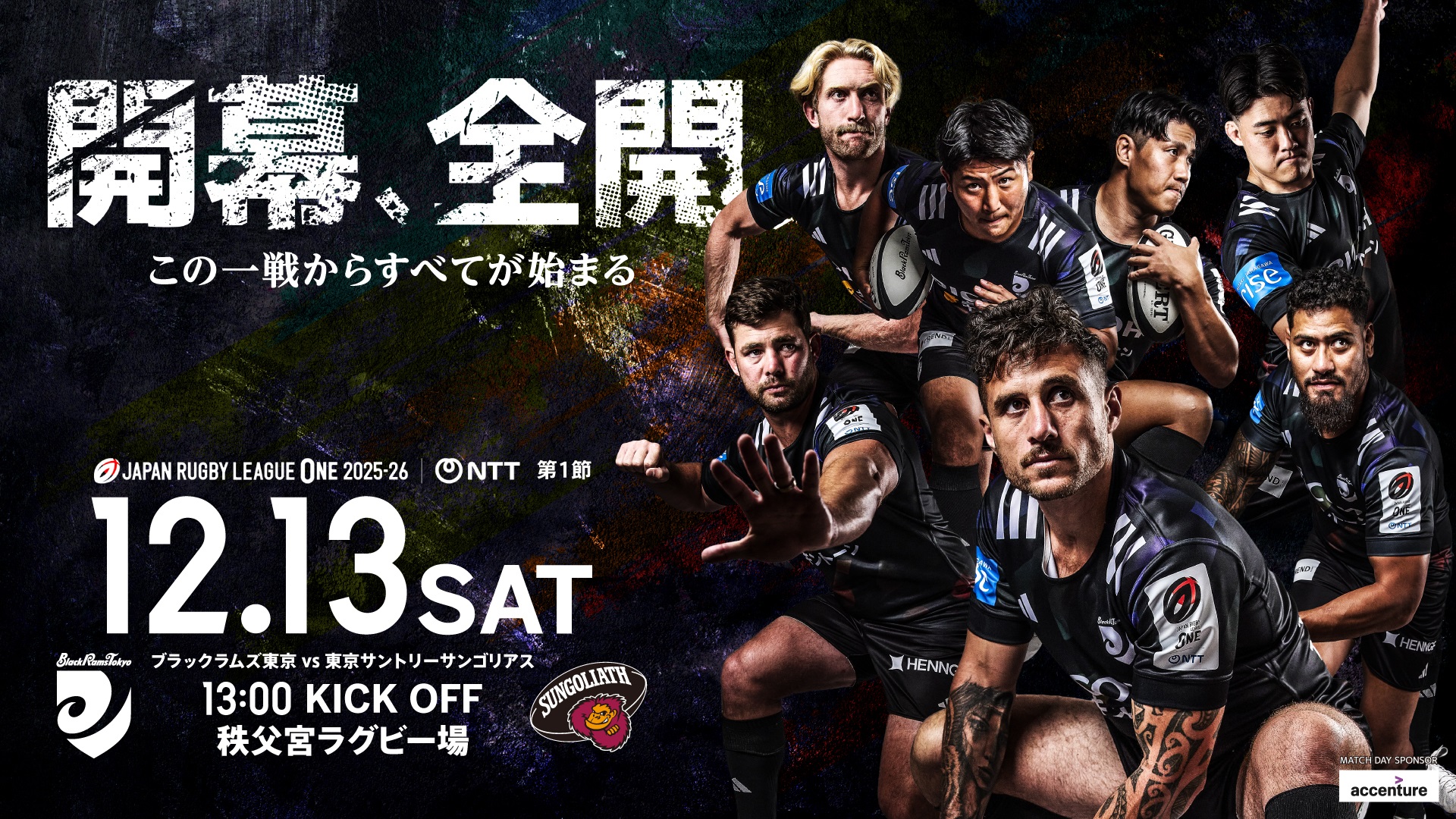 12月13日(土)に秩父宮ラグビー場で開催される NTT JAPAN RUBGY LEAGUE ONE 2025-26 第1節 ブラックラムズ東京 vs. 東京サントリーサンゴリアス(13:00キックオフ)の会場に高橋光臣さんが来場し、試合前に「応援アンバサダー就任セレモニー」を実施します。皆様のご来場を心よりお待ちしています。