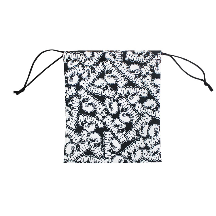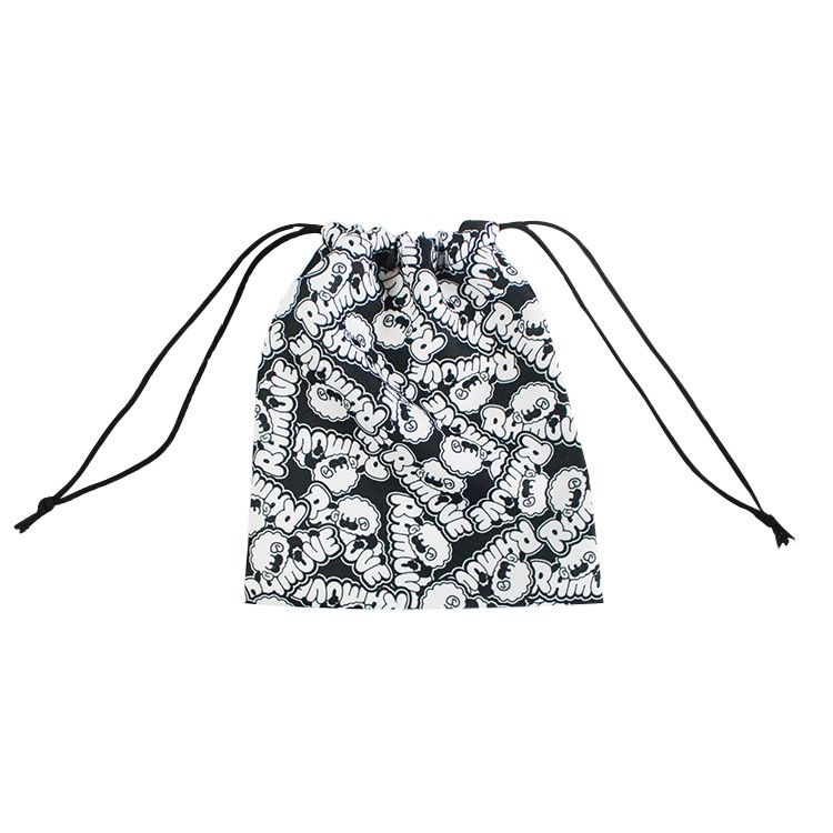 いくつあっても困らない巾着にキュートなRAMOVEラムまるを総柄でデザイン。