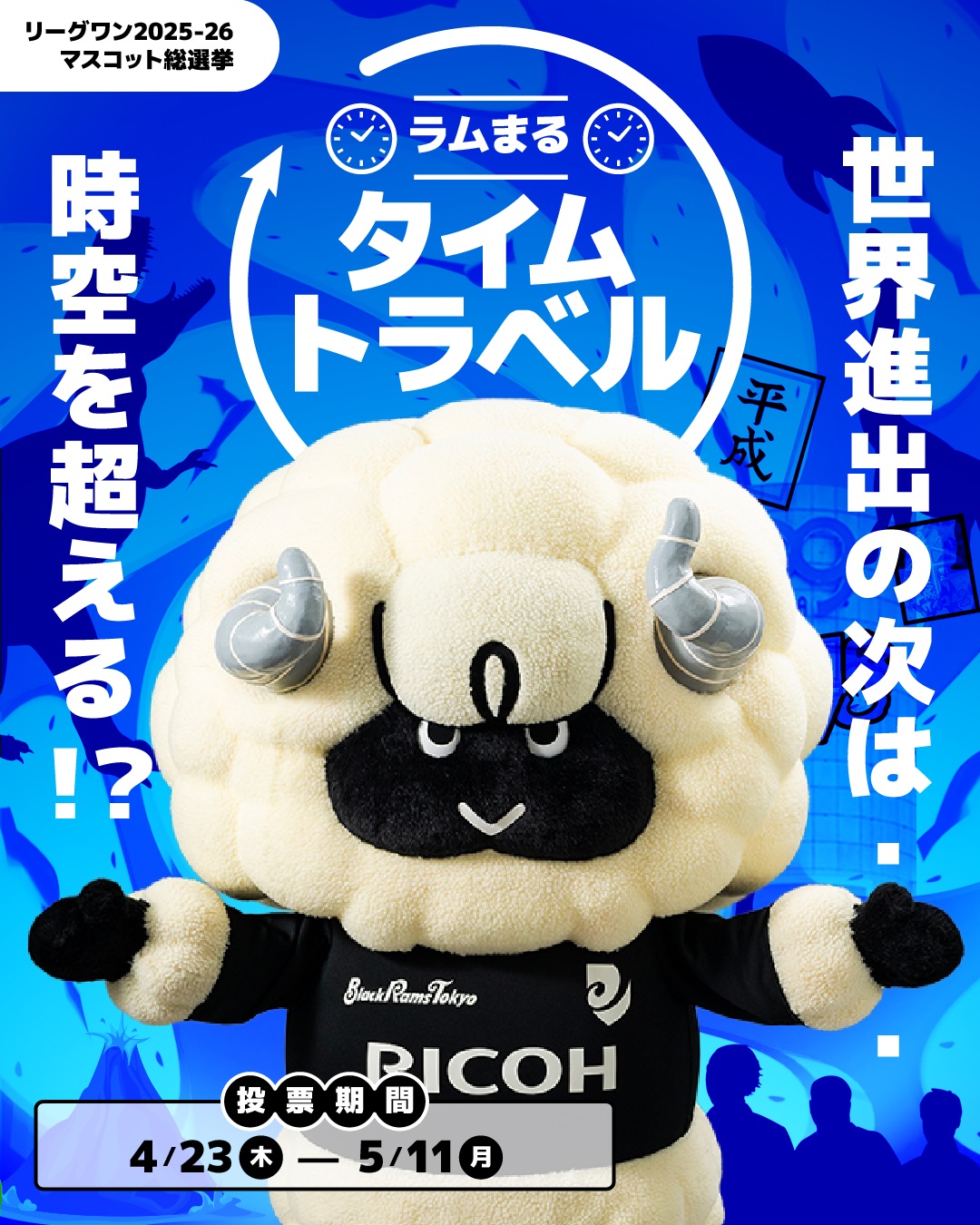 2025-26シーズンは、優勝を目指してタイムトラベルに?!その様子をラムまる公式Xアカウント @BR_RAMUMARU でお届けします。ラムまるへの投票と公式Xアカウントのフォローよろしくお願いします。