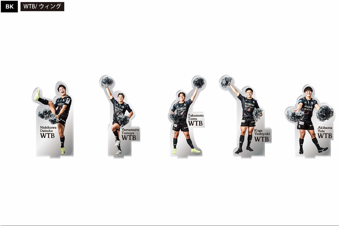 今シーズン大好評のちあちあ選手アクリルスタンドのBIGサイズがオンラインショップ受注販売限定で登場!あのキュートなちあちあ選手が大きくなってあなたのもとへ。岸佑融選手と南昂伸選手はジャンプポーズのためジャンプをしているように見えるようチャームを付けています。
