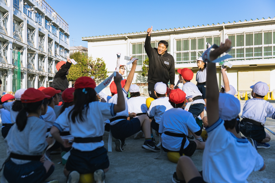 12月は、世田谷区内2校の小学校でゲストティーチャー授業を行いました。寒さがいよいよ増してきて、今月もインフルエンザによる学級閉鎖などがあり授業が中止になってしまったこともありましたが、授業に参加してくれた子どもたちは、いつものように元気いっぱい、笑顔いっぱいでタグラグビーを楽しんでくれました。