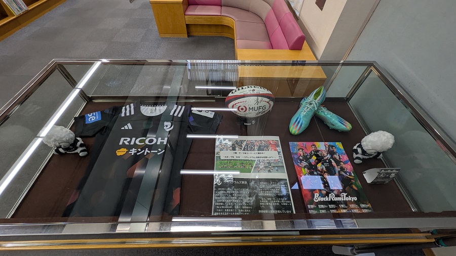 「駒沢ホスト3連戦3万人プロジェクト」の取り組みの一環として、2026年2月25日(水まで、世田谷区立中央図書館にてブラックラムズ東京の展示をおこなっています。どなたでもご覧いただけますので、お近くにお越しの際はぜひお立ち寄りください。