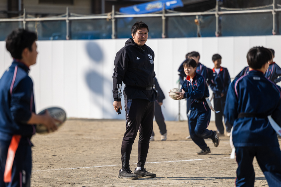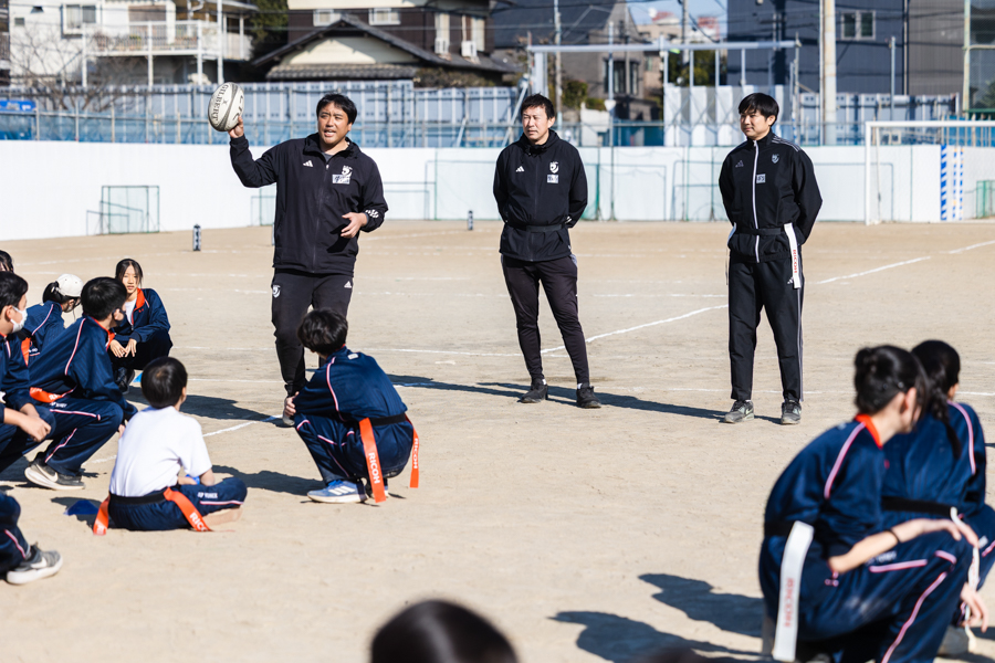 2月は、世田谷区の弦巻中学校(2回)を訪問し、タグラグビーの指導を行うことができました。