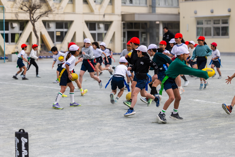 1月は、世田谷区の下北沢小学校、桜丘小学校、代田小学校、赤堤の小学校、塚戸計小学校、深沢小学校の計6校を訪問し、タグラグビーの指導を行うことができました。