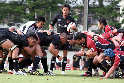 雨で湿った芝生の上での厳しい暑さ。ラグビーをするには難しいグラウンドコンディションだった。しかしリコーには、春からこつこつと積み上げた心技体があった。