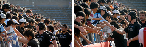 試合終了後バックスタンドにてファンとの交流を実施し、選手は多くのファンとの交流を楽しみました。