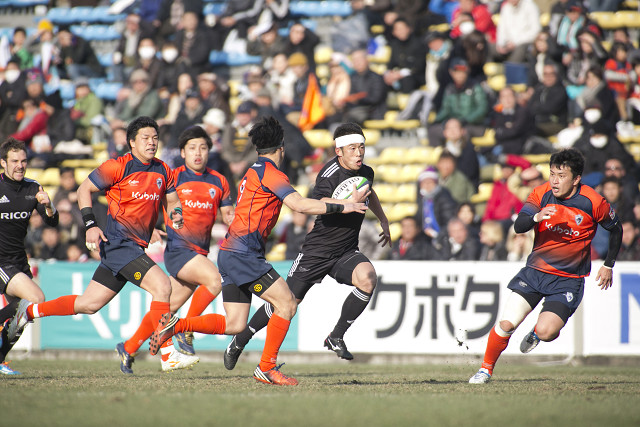 しかし、残り時間はまだある状況でリコーは冷静さを保つ。キックオフでプレッシャーをかけクボタにノックオン。リコーは敵陣でのスクラムを前に、PR藤原丈宏を髙橋英明に、HO滝澤を森雄基に交替。バックスもSOエリソンを徳永亮に、WTB長谷川をアマナキロトアへアに交替。(32分)