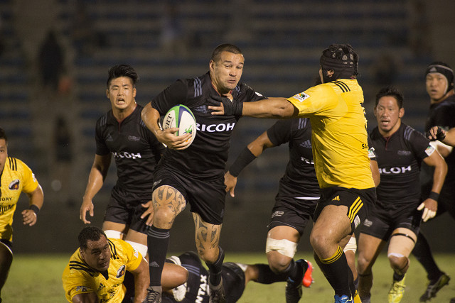 リコーは逆転はされたものの、気落ちすることなく攻めていく。右中間で得たスクラムから左に展開し、大外でWTB小松大祐が突破を狙うが、惜しくもタッチラインを踏む。HO森に替えてマウジョシュア。(20分)