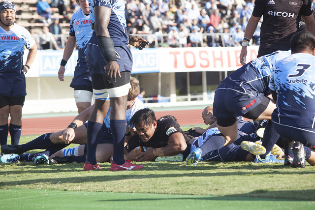 リコーはセットプレーの精度や我慢強いアタックで2トライを奪ったが、ヤマハ発動機の自陣からの果敢なランやセットプレーからのアタックを阻めず、3つのトライを許した。