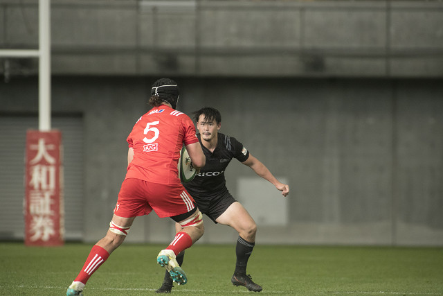 (こうした相手に対して、ディフェンスの対応はいかにしていくべきなのか)これはコーチとも話さないといけませんが、1対1のタックルの精度ですよね。オプションを増やされて1対1の局面をたくさんつくられてしまったというのは課題ですが、その1対1をしっかり止めることで、自分たちのディフェンスに戻すための活路を見出せるはずなので。その精度でも上回られていましたよね。WTBアンダーソン フレイザー(14番)などには弾かれたりしていたので。このレベルでアタッククオリティが高いチームは、今のトップリーグだとおそらくは神戸製鋼さんくらい。それに通用するディフェンスというものを意識しなければいけない。