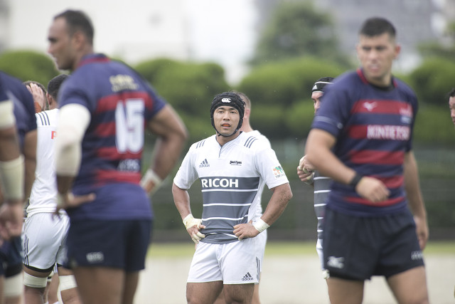 (スクラムの印象、感想は?)個人的な感覚ですが、リコーが落としたと判定されたスクラムでも、ヒットでプレッシャーをかけてセンターラインを獲れていることもありました。圧倒するところまでもっていけなかったので、しょうがないんですけどね。苦労しているところもあるんですけど、まずまずのスクラムは組めていると思います。ただ、まだ1番ではないです。切り替えも大事ですが、見直しもしっかりして、チームとして成長の機会になるよう、カップ戦最後の試合に臨みたいと思います。
