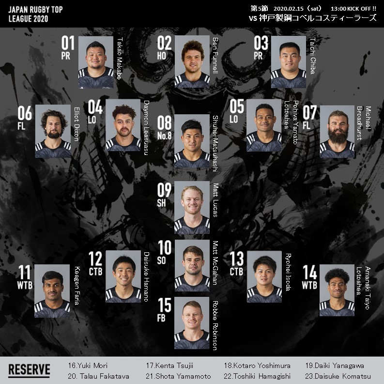 神戸製鋼コベルコスティーラーズ戦メンバーを公開しました。