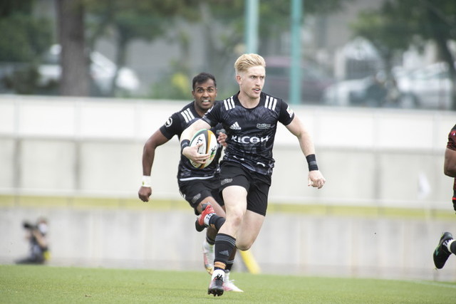 リコーは一時退出していたCTBロトアヘアアマナキ大洋をメインに正式に入れ替えたほかはそのままのメンバーで後半へ。2トライ2ゴールでも追いつけない15点差を築いたリコーにとって、次のトライは勝利を大きく引き寄せるものといえた。FBマッガーンのキックオフボールを追いかけ、激しいディフェンスから入っていく。