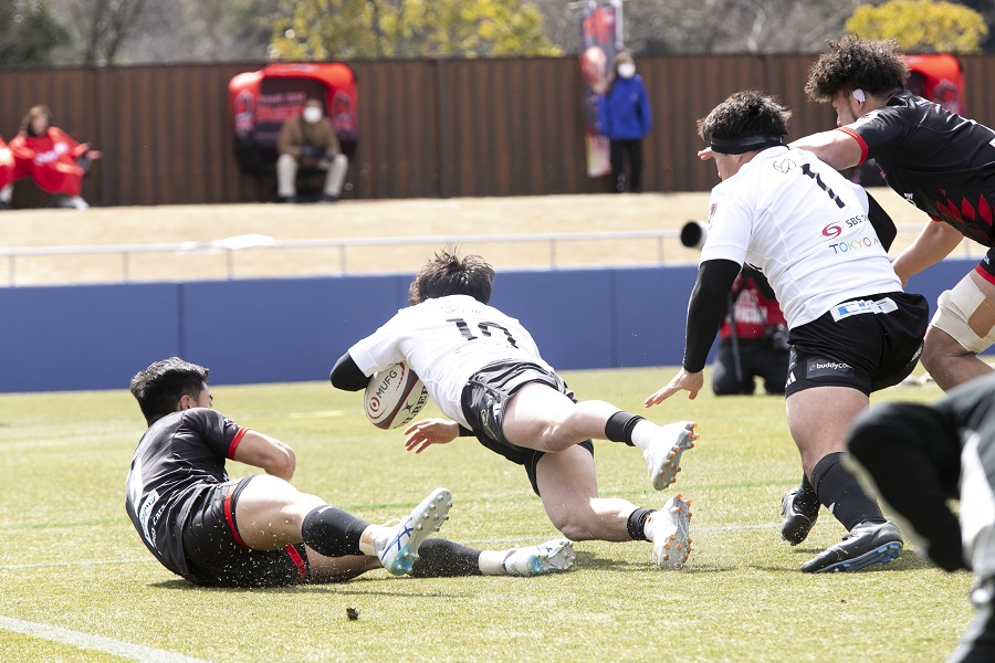 風上ながらそこまで多くのキックは蹴らず、テンポを上げアタックを継続してくる相手への対応は体力的にかなりタフだったことだろう。試合終盤のモメンタムが相手に傾いた時間帯は本当にきつそうに映ったが、最後に自陣から仕掛けた猛烈なアタックにはBR東京の底力を感じさせた。ノーサイドと同時にピッチに倒れ込んだ選手たちの姿は、すべてを出しきって走り通したことの証左だろう。