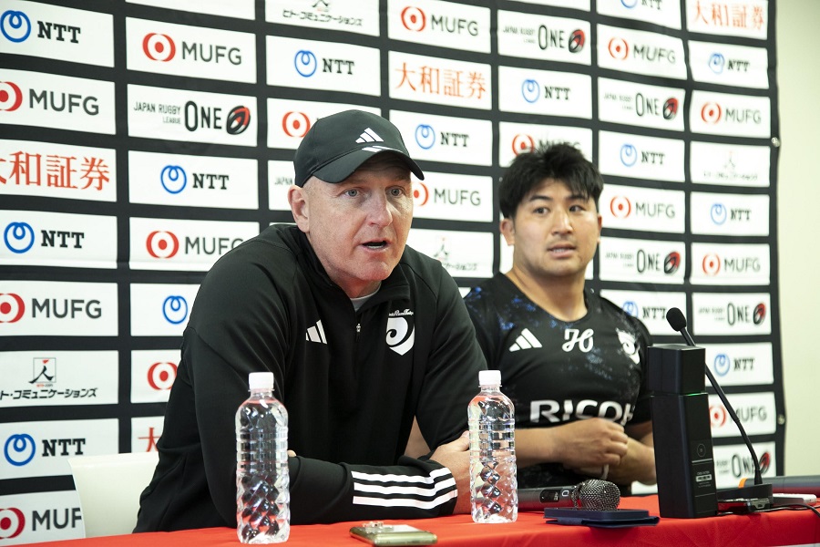グラウンドからロッカーに戻る前に、1回チームとしてコネクトしてから戻ろうということで、今シーズンから取り組んでいる。グラウンドで起きたことを修正するために、(修正点を)しっかりシェアしている。今日に関しては前半の最後の方に、CTBレメキ(ロマノラヴァ)選手やFBトム マーシャル選手のカウンターアタックを結構受けていたので、その2人に対してどうディフェンスするかをもう1回確認した。ロッカーではユニットに分かれ、FWはセットピースなど、BKはエリアやシェイプなどの話をして、最後に一緒に気合を入れていた。