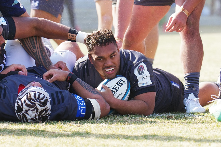 その後は相模原DBにチャンスを与えながらも、自陣で粘り強いディフェンスを見せてトライを阻むと、相手がこぼした球に反応したSO中楠一期が抜け出し、90m近い距離を走りトライを奪い17-0(36分)。終了間際には、SO中楠からWTBトゥポウへのキックパスを通してさらにトライを奪い(39分)、22-0で前半を終える。