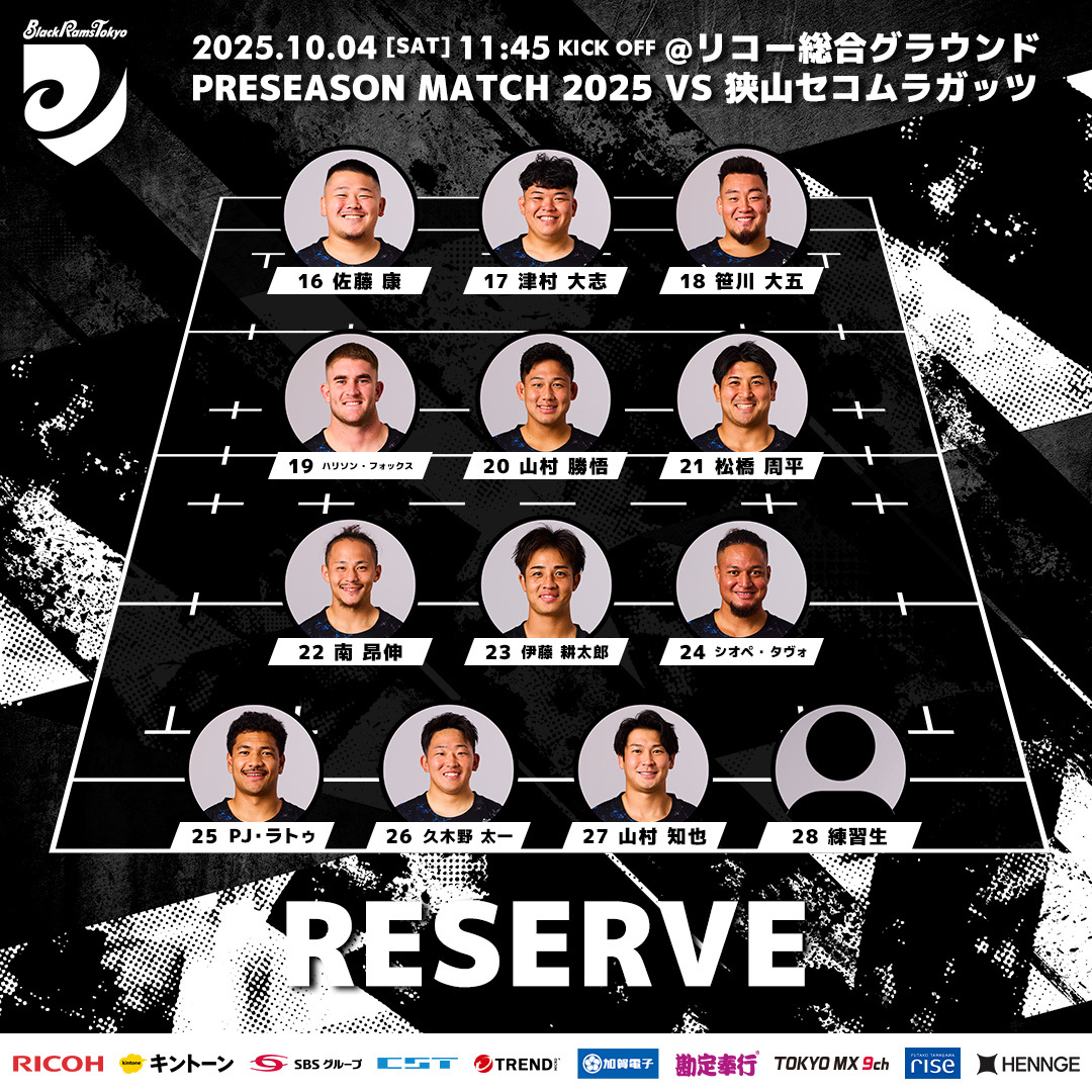 ・試合速報・試合結果については、「試合日程・結果 リーグワン ライジング vs.狭山セコムラガッツ」からご確認ください。