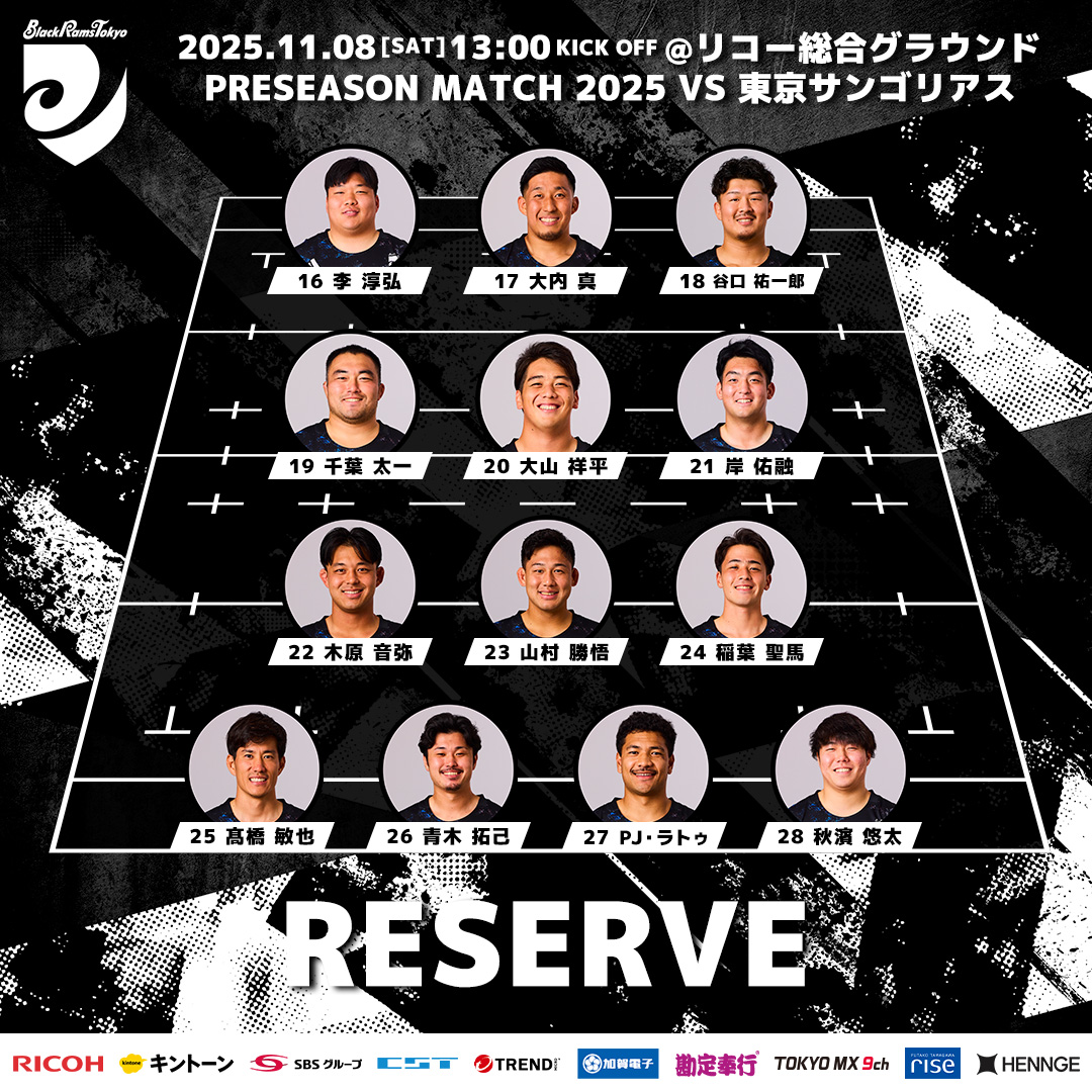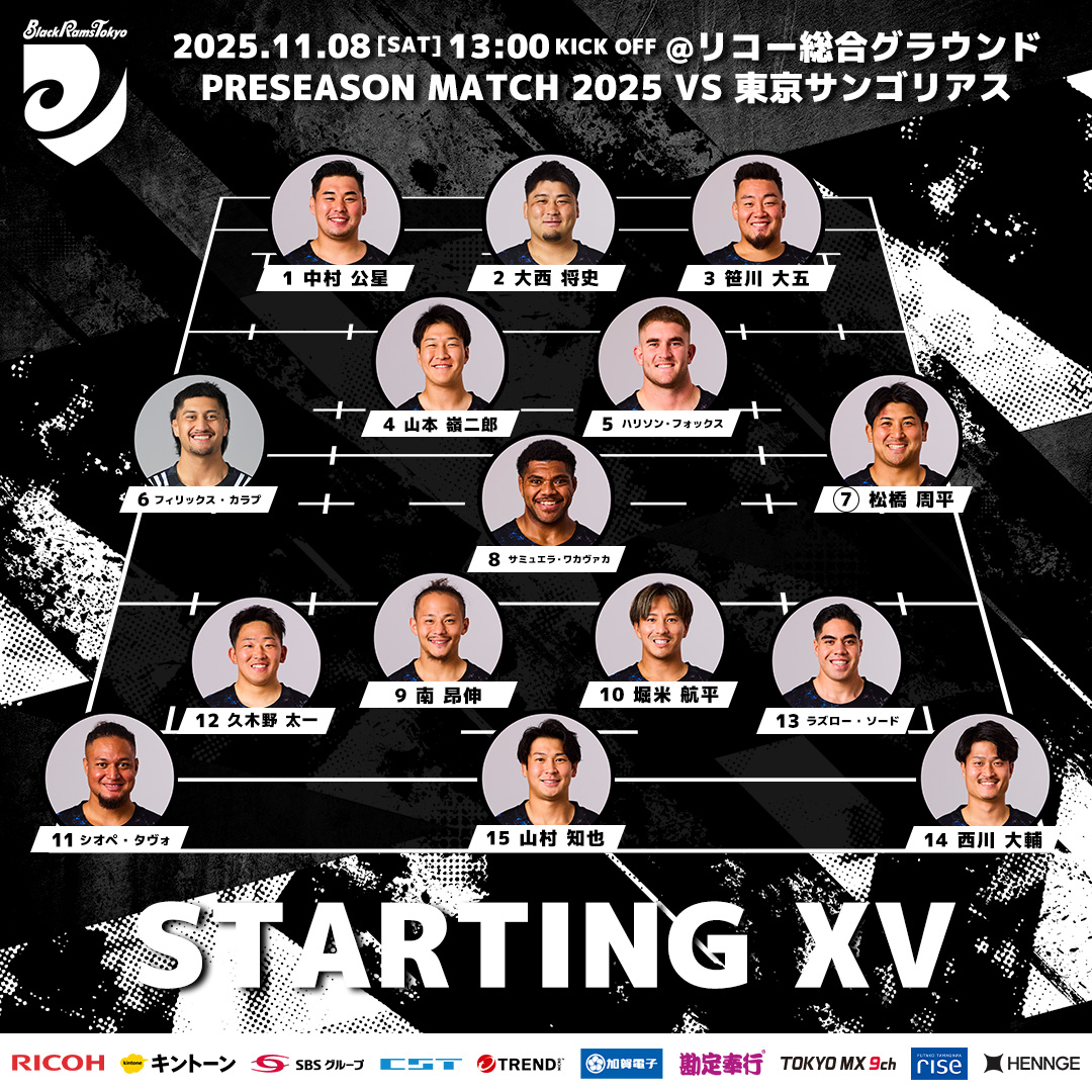 11月8日(土) プレシーズンマッチ 東京サンゴリアス戦 メンバーのお知らせ
