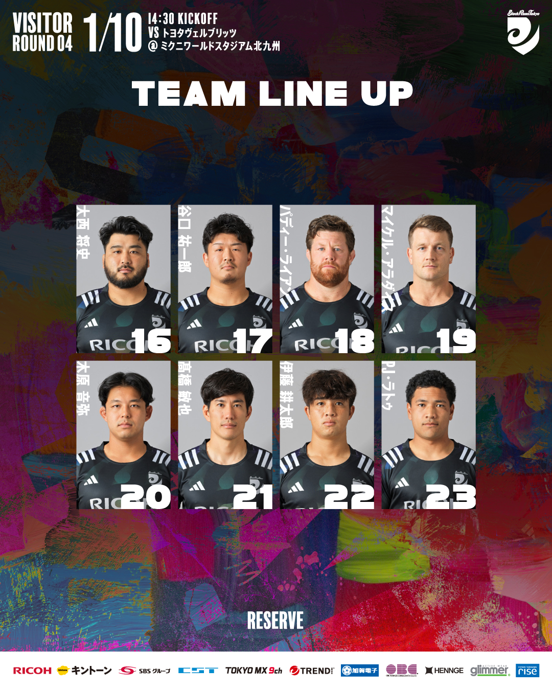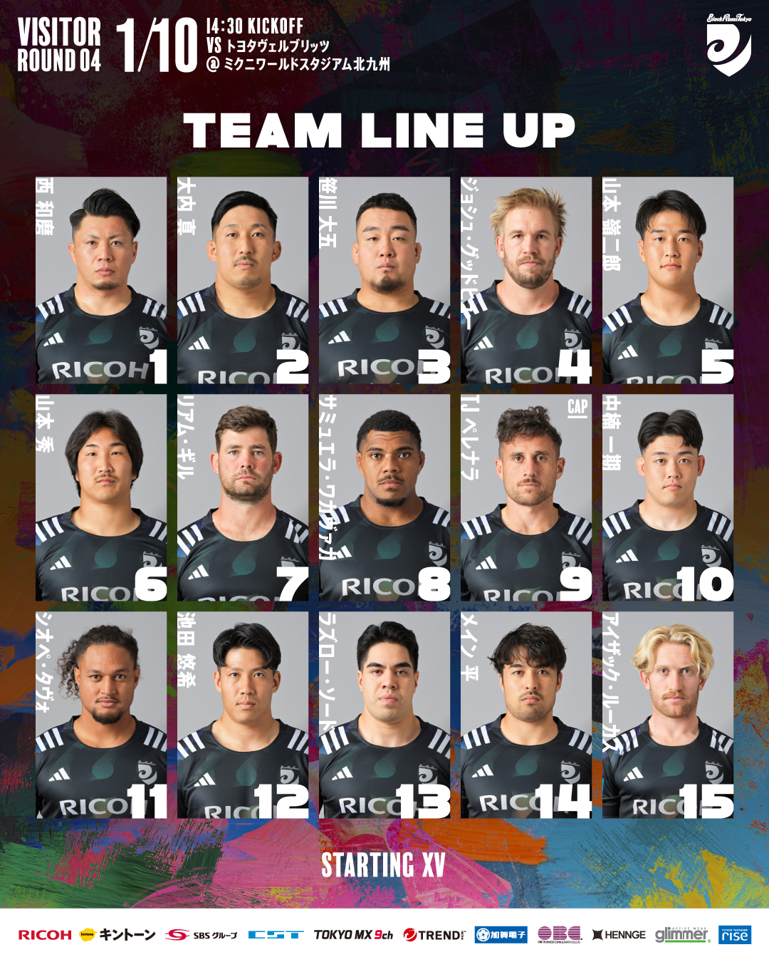 2026年1月10日(土)におこなわれるNTT JAPAN RUGBY LEAGUE ONE 2025-26 第4節 トヨタヴェルブリッツ戦について、以下のとおりメンバーを発表します。