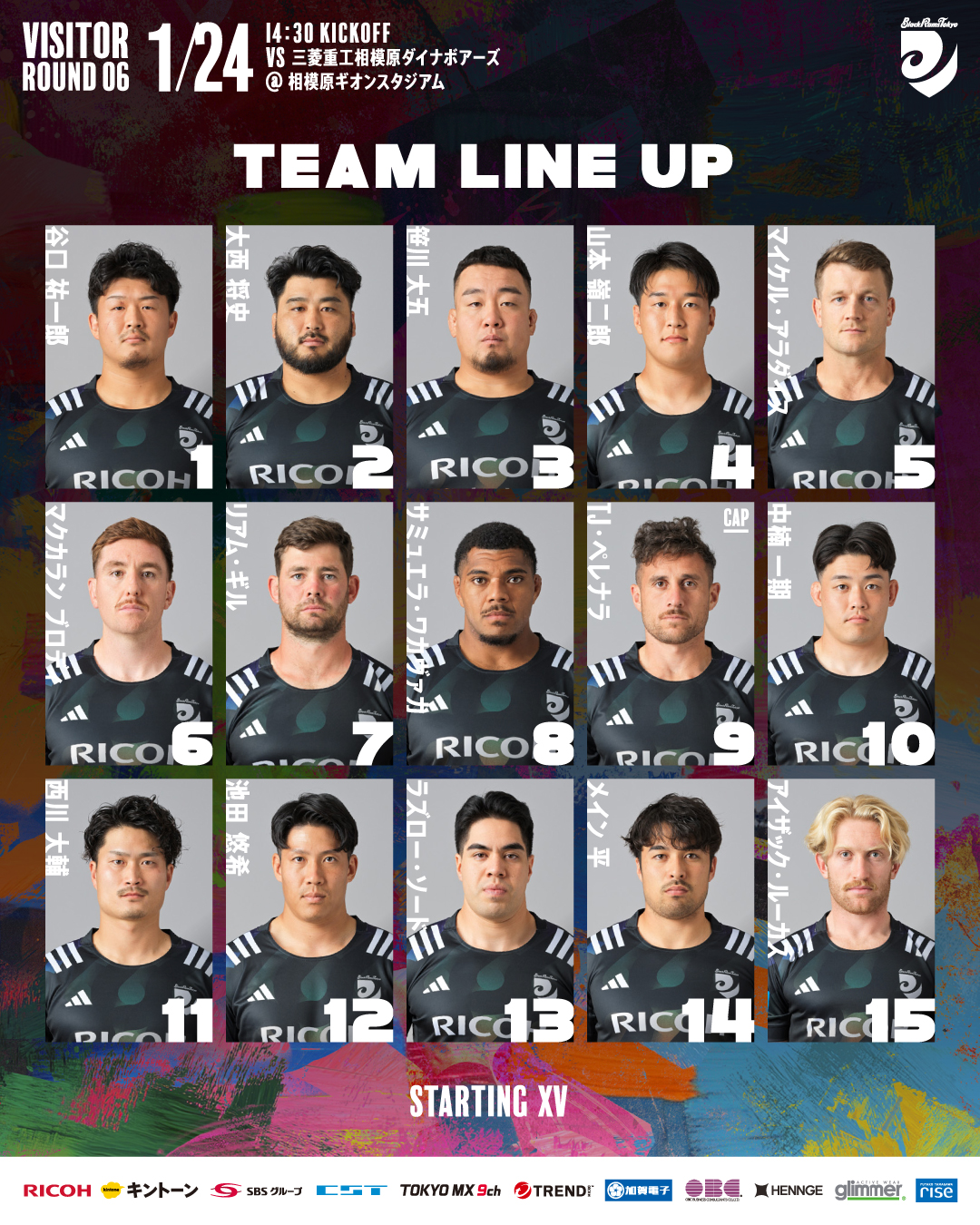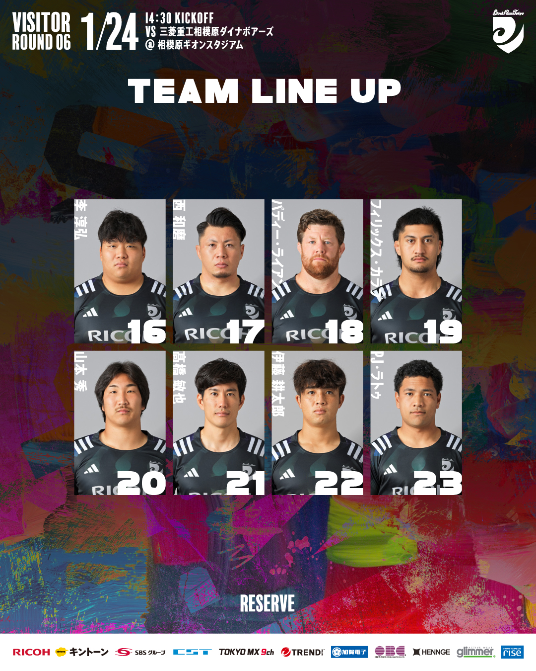2026年1月24日(土)におこなわれるNTT JAPAN RUGBY LEAGUE ONE 2025-26 第6節 三菱重工相模原ダイナボアーズ戦について、以下のとおりメンバーを発表します。