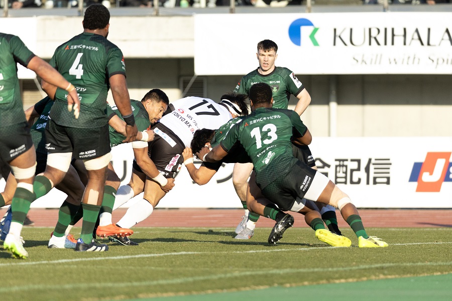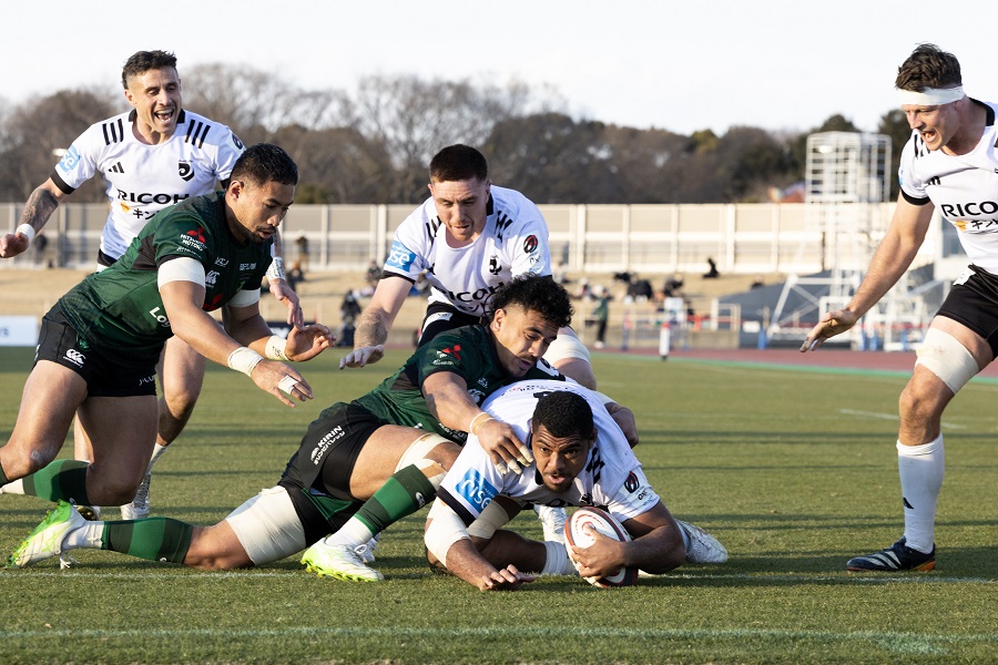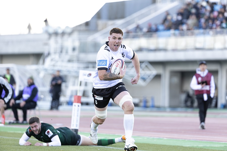 相模原DBの規律が乱れ2枚のイエローカードが出ると後半23分、ゴール前スクラムをプッシュし、NO8サミュエラ・ワカヴァカが持ち出しトライ。30-19とした。それでも闘志を失わない相模原DBは13人でアグレッシブに挑み、ハイボールの再獲得からチャンスメイク。後半27分にトライを返され、30-24と詰め寄られる。