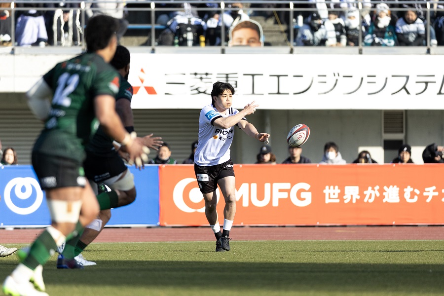 NTTジャパンラグビーリーグワンは第6節へ。8位のリコーブラックラムズ東京(BR東京)は、9位の三菱重工相模原ダイナボアーズ(相模原DB)と神奈川・相模原ギオンスタジアムでのビジターゲームに挑んだ。前半に3トライを許し追いかける展開となったが、後半を粘り強く戦い逆転。7本のプレースキック全てを決めたSO中楠一期のホーン後のPGで点差を9とし、順位を争う相模原DBのボーナスポイント獲得を阻み、今季3勝目を挙げた。通算成績は3勝3敗で総勝ち点は12。順位は8位をキープ。プレーオフ圏内の6位・静岡ブルーレヴズとの勝ち点差は3となっている。