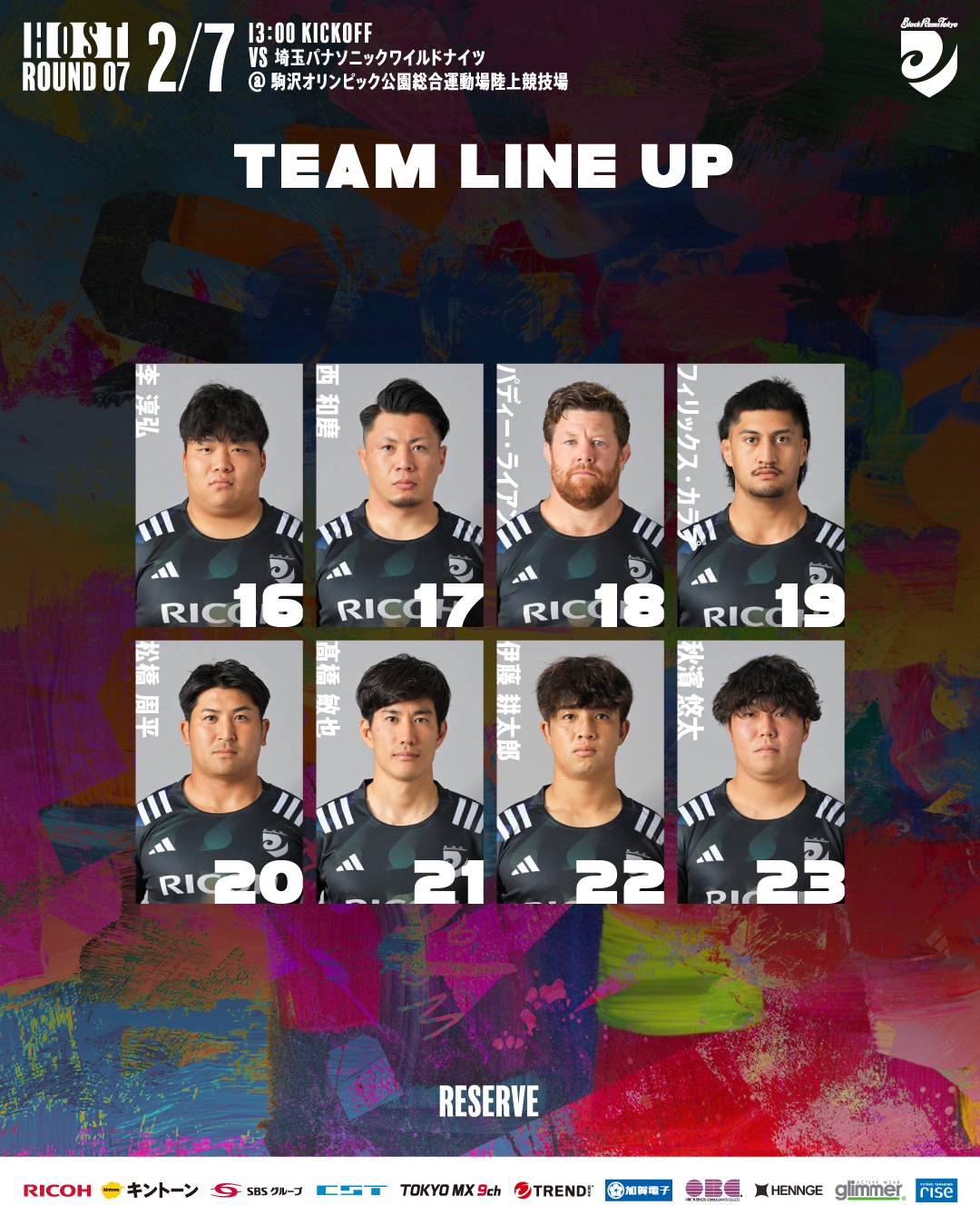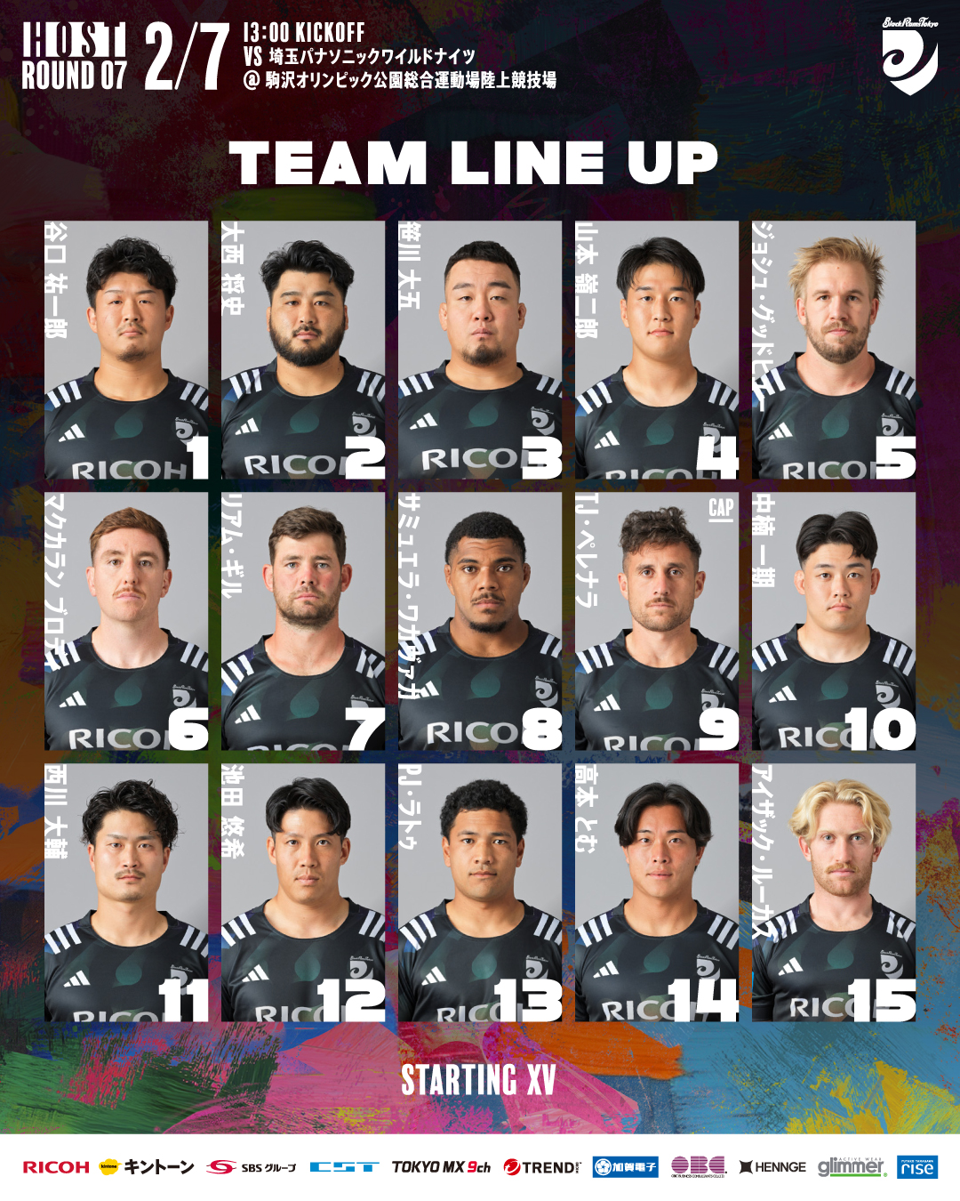 2026年2月7日(土)におこなわれるNTT JAPAN RUGBY LEAGUE ONE 2025-26 第7節 埼玉パナソニックワイルドナイツ戦について、以下のとおりメンバーを発表します。