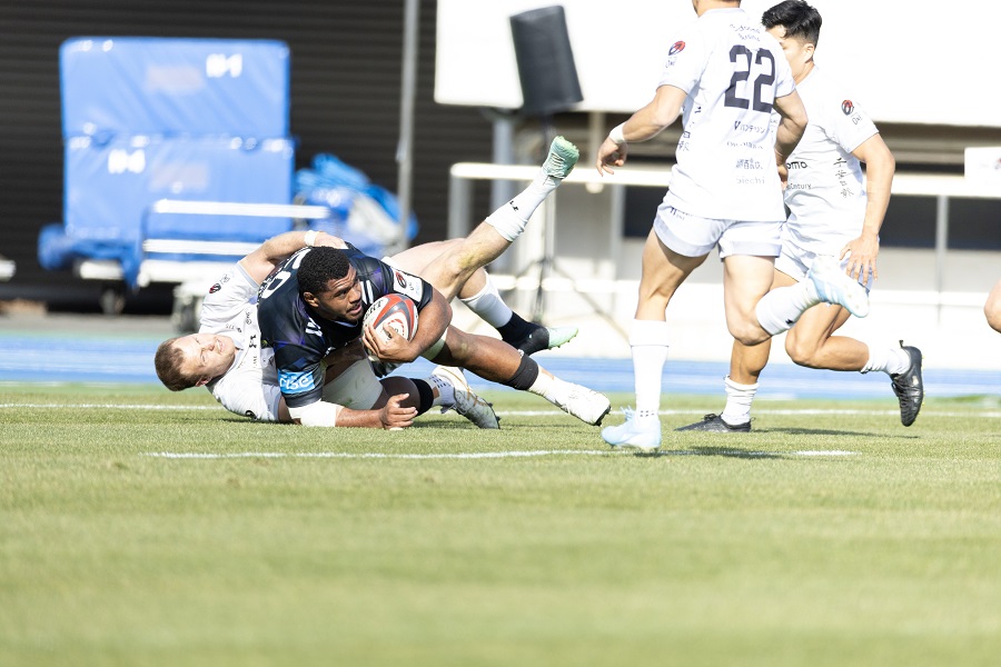 第5節の神戸S戦で大敗し、巻き返しを図った第6節の相模原DB戦でもリードを奪われる苦しい展開となる中、LO山本嶺二郎のゴール前キックチャージから攻め、PR西和磨がディフェンスをねじ伏せるようにして奪った逆転トライがあった。振り返れば、ターニングポイントだったようにも思える場面だ。そのときのことを聞けた。