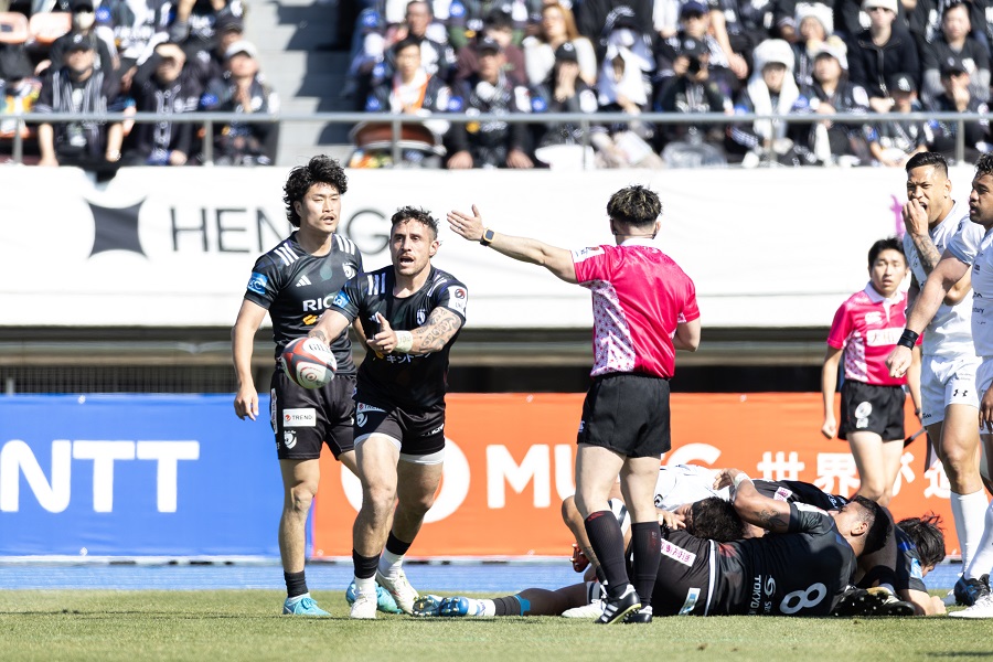 26分にSH TJ・ペレナラにイエローカードが出て14人となったが、FWの奮闘、SHを兼ねたSO中楠によるコントロールもうまくいき、反撃の芽を潰していく。35分にPG、36分にスピードを見せたNO8サミュエラ・ワカヴァカの突破とFLリアム・ギルのサポート、“師弟”連携でトライが生まれ41-14。最終盤はHO李淳弘、LO岸佑融、CTB秋濱悠太の2025年に入団した若手3人が出場する布陣で戦い、1トライを許したものの3トライ差を守って勝利した。