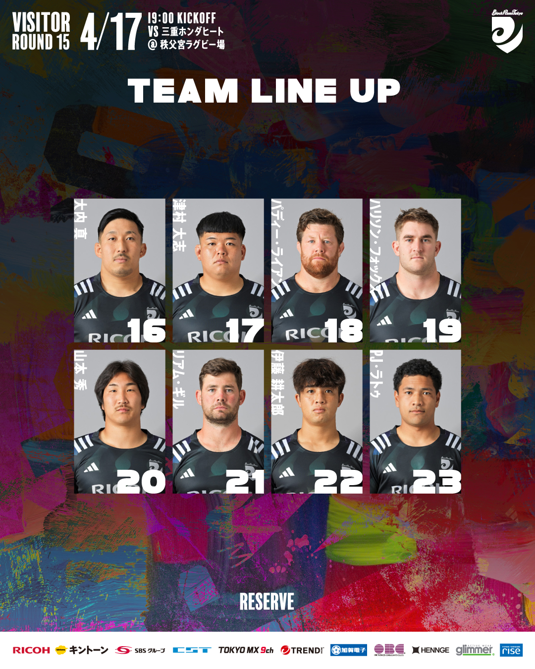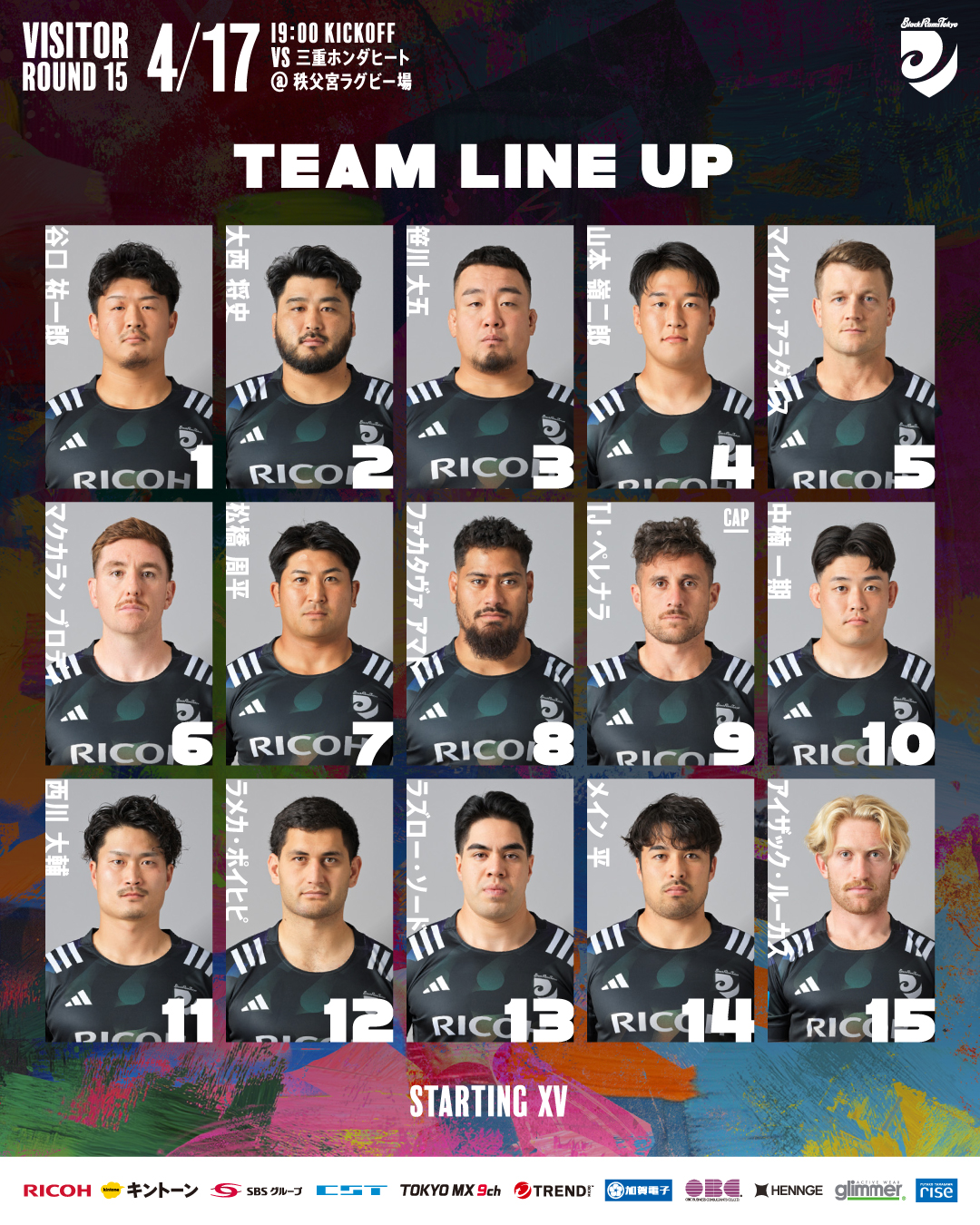 2026年4月17日(金)におこなわれるNTT JAPAN RUGBY LEAGUE ONE 2025-26 第15節 三重ホンダヒート戦について、以下のとおりメンバーを発表します。