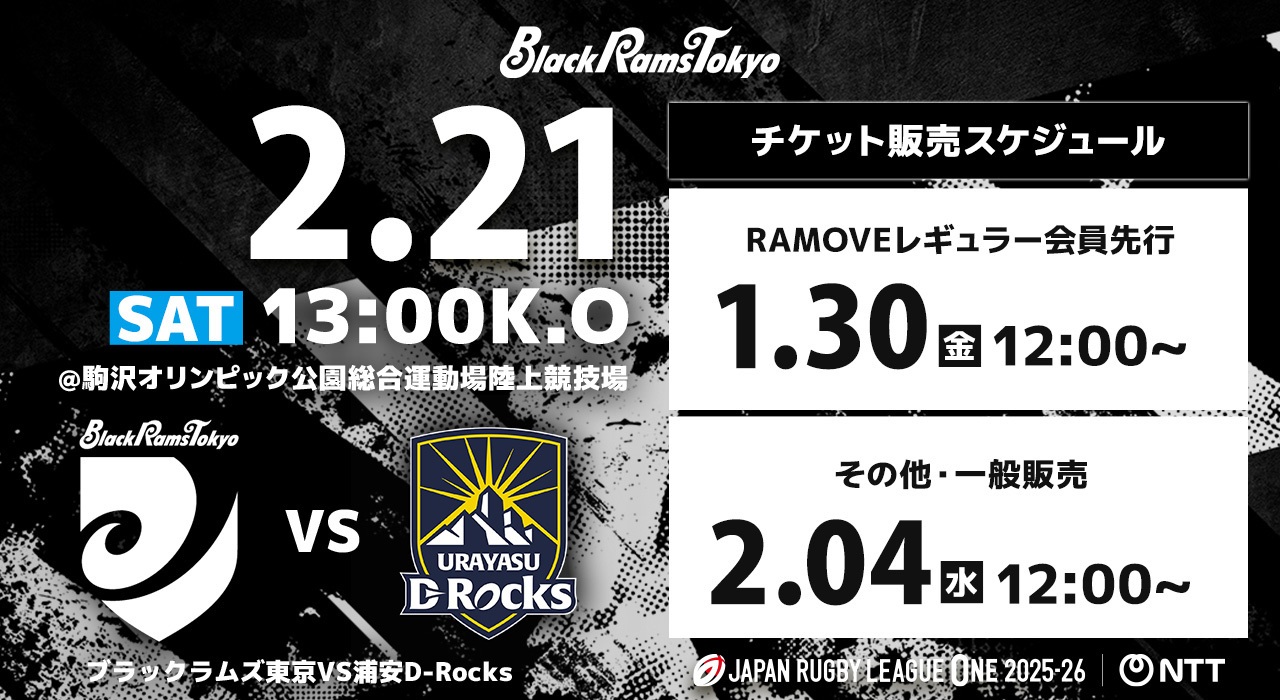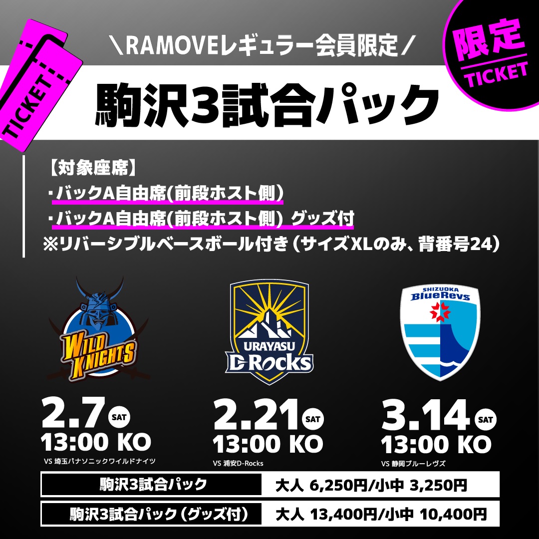 第7節 埼玉パナソニックワイルドナイツ戦 チケット販売及びRAMOVE会員限定イベントのお知らせ