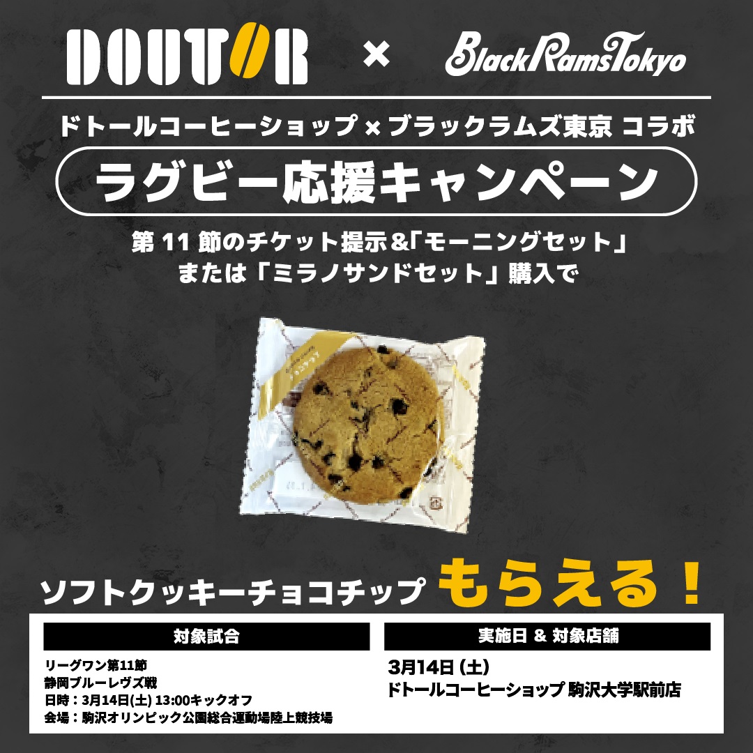第11節 ドトールコーヒーショップ駒沢大学駅前店との「ラグビー応援キャンペーン」実施のお知らせ