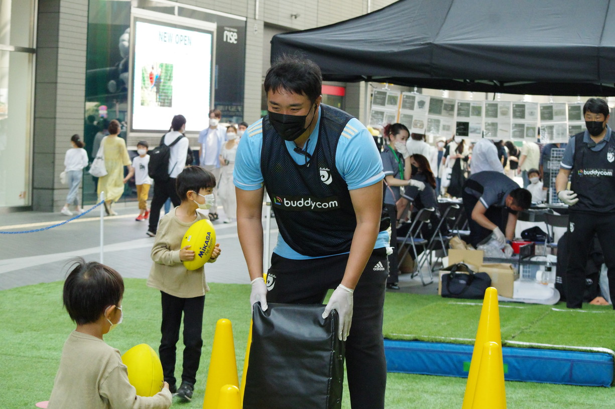 2022年4月10日(日)にホームタウンである世田谷区内、本拠地グラウンドの最寄り駅でもある二子玉川駅直結の二子玉川ライズ ガレリア(長さ100m、幅員20m、高さ30mの巨大吹き抜け空間) でラグビーイベントを実施しました。