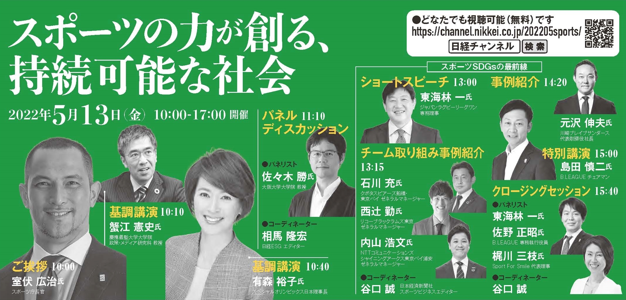 5月9日〜14日まで日経SDGsフェスティバルがハイブリット開催され、13日のプログラム「スポーツの力が創る、持続可能な社会」セミナーにおいて、西辻GMがパネラーとして登壇し、NTTジャパンラグビーリーグワン所属チームとして、リーグの掲げる理念に基づくSDGsに対する取り組み事例紹介やパネルディスカッションが行われました。