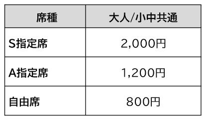 大人価格と小中価格が共通になります。SS指定席以外は、通常より1,000円お得に購入いただけます。