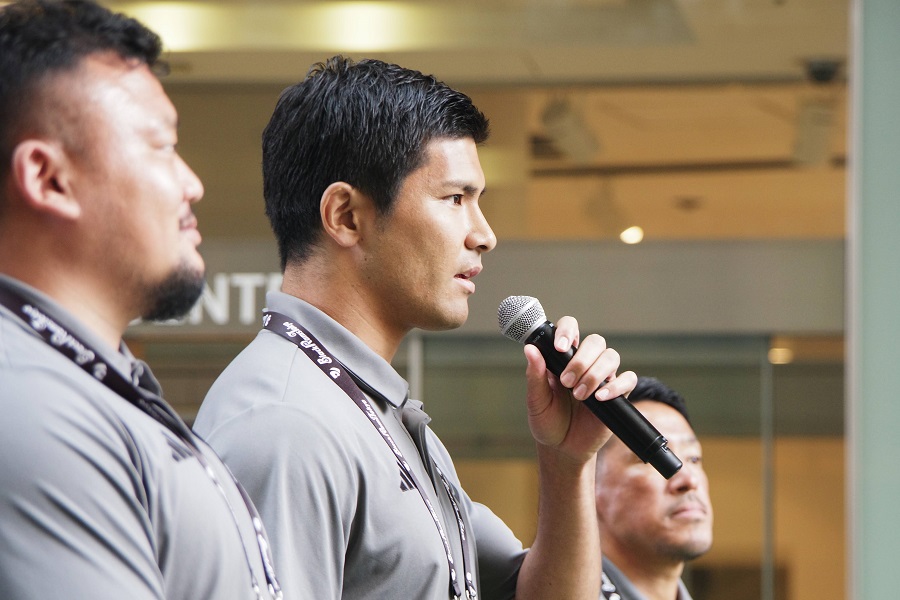 そして、2023-24シーズン全18試合出場を達成した大山祥平選手とネイサン・ヒューズ選手、公式戦100試合出場を達成した柳川大樹選手とロトアヘア ポヒヴァ大和選手から、応援いただいたファンの皆様へご挨拶を実施。