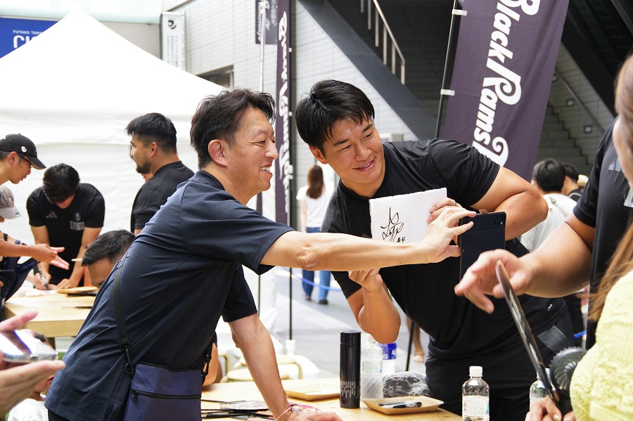 1日目・2日目ともに、選手との交流会(サイン・写真撮影)をおこないました。チームグッズを身に着けた方や選手グッズを持参される方など、多くの方にご参加いただきました。新加入の三竹康太選手も参加し、ブラックラムズファミリーの皆様にご挨拶する初めての機会となりました。