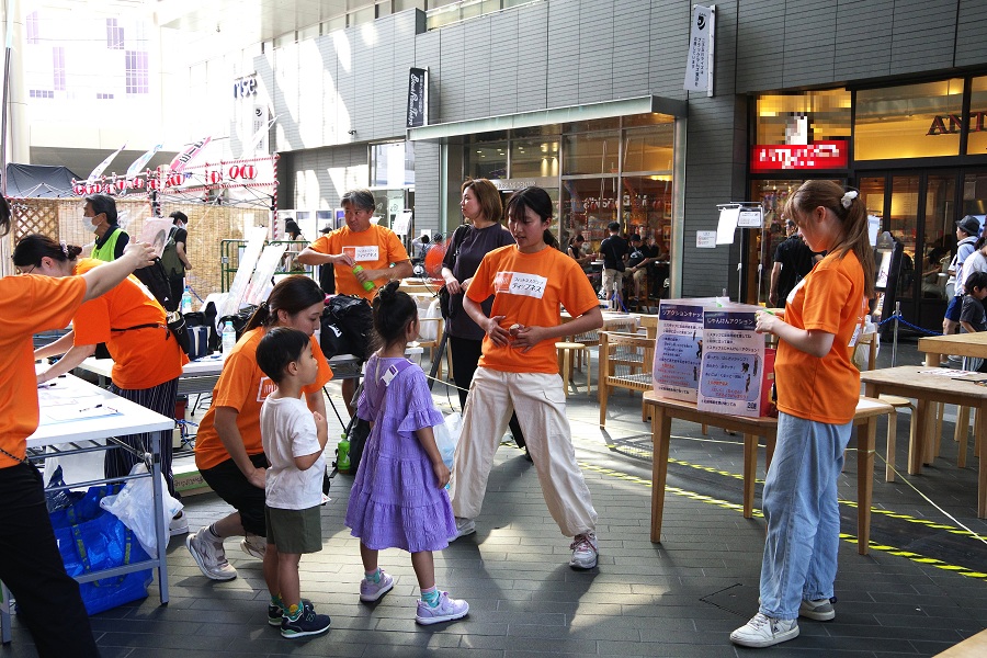 チームスタッフやチームボランティア「Ramgelist (ラムジェリスト)」の皆さんと一緒に、大人からこどもまでたくさんの方にパスとタックルに挑戦いただきました。2日目には西辻勤GM・千葉太一選手も参加し、皆さんとの交流を楽しみました。
