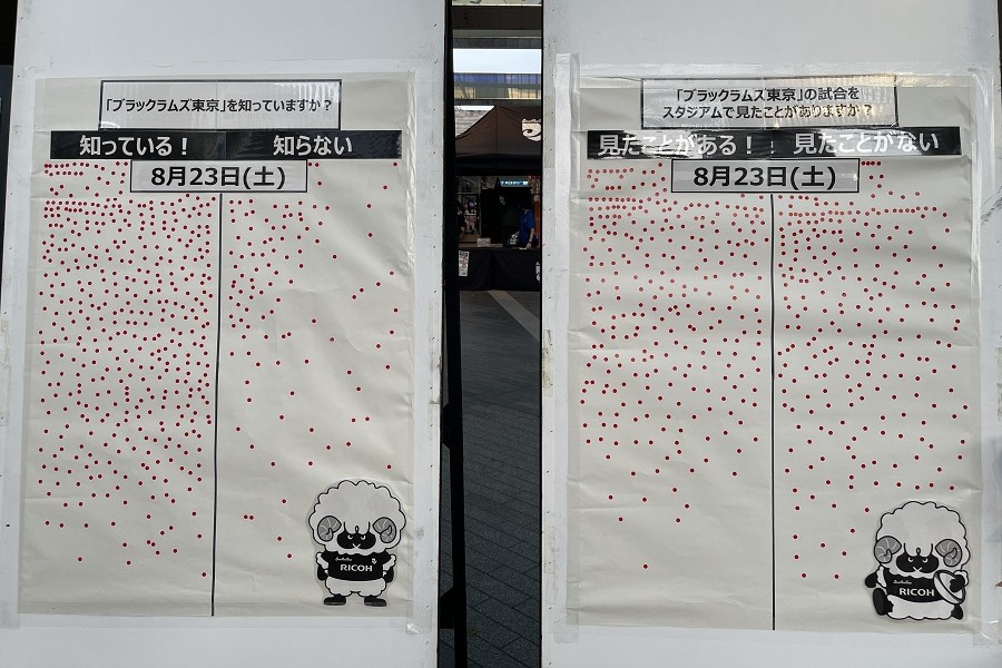 また、会場内のボードにておこなった認知度調査では「ブラックラムズ東京を知っている」の割合が2日とも80%を越え、世田谷区や近隣での活動が実を結んでいることを感じました。