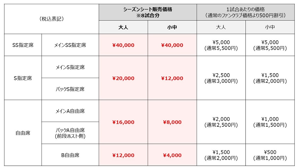 ※詳細は「2025-26 シーズンシート情報ページ」からご確認ください。