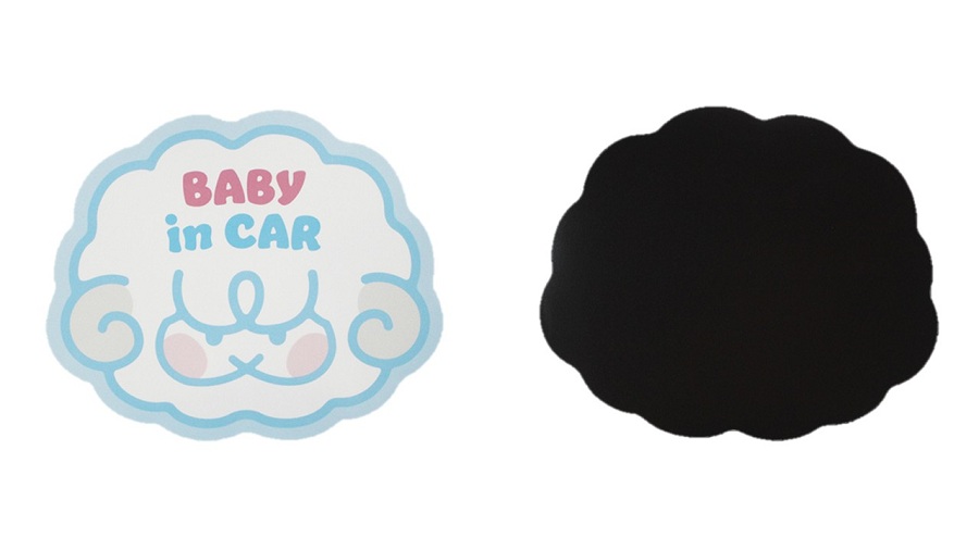 ラムまるが赤ちゃんに変身!? カーマグネットの定番、「BABY IN CAR」のラムまるデザインが登場!ブルー&ピンクの2種類をご用意。ご自宅用、親戚やお友達へのお祝いなどでも喜ばれるのでは?