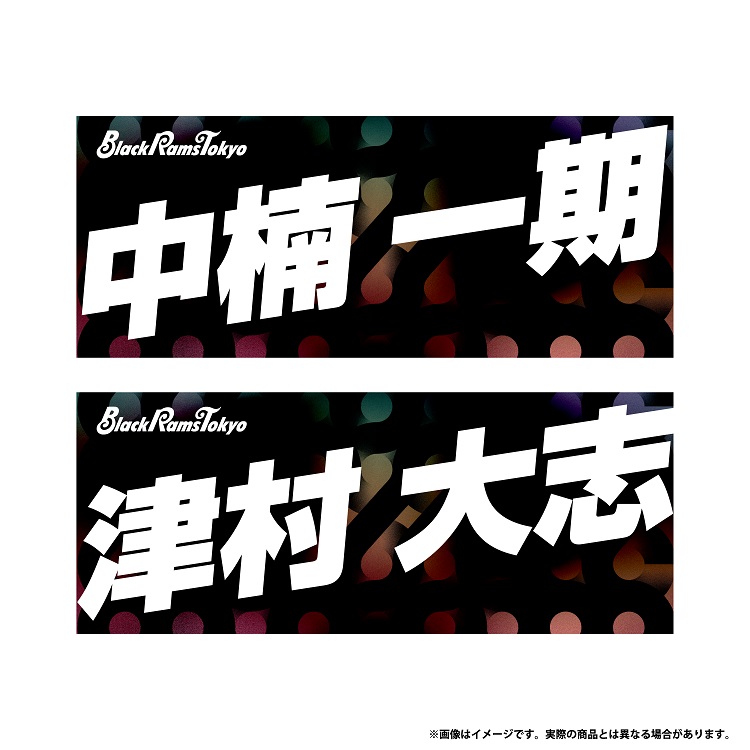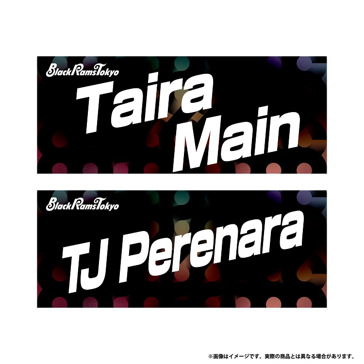 ブラックラムズ東京応援グッズの定番、選手名入りタオルの日本語ver.、English ver.の受注販売。全所属選手に加えて、タンバイ・マットソンHC、西辻勤GM、ラムまるが登場!これを掲げれば選手に見つけてもらえるかも。