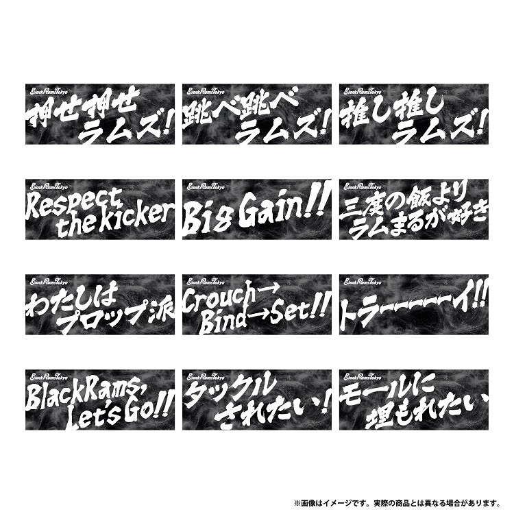 ブラックラムズ東京初の応援メッセージが入ったタオルが登場!「押せ押せラムズ!」「トラーーーーーイ!!」など定番のメッセージから「わたしはプロップ派」「三度の飯よりラムまるが好き」などユーモアを効かせたデザインも。さらに、試合勝利時に選手が歌う「リコーラグビー部部歌」の歌詞デザインも登場。今シーズンはたくさんこの歌を歌えるようにという祈りを込めて販売します。YouTubeなどで思いっきり歌っている選手の姿が見られるので是非チェックしてください!