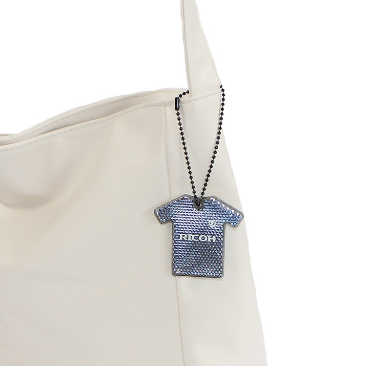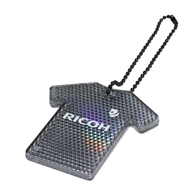 歩くとき、自転車に乗るときなど、いつでも安心・安全にお出かけできるよう、リフレクターキーホルダーを発売!世界で一番夜が長いことで有名なフィンランド製のリフレクターを採用。フィンランドではリフレクターキーホルダーをリュックやスマートフォンなどに付けることがポピュラーで形も様々。反射率も高くドライバーからの視認性も良い機能性抜群です。シャツ型のキーホルダーにエンブレムとRICOHロゴを配置したジャージー風デザイン。この秋冬から皆さんの交通安全のお供に是非お買い求めください!