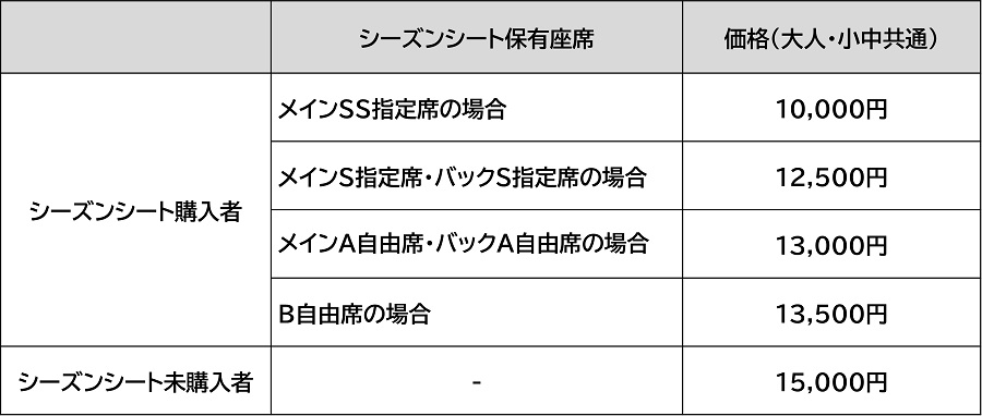 ※座席は事務局にて指定させていただきます。座席チケットは当日、ファンクラブブースにてチケット代金をお支払いいただいた後、お渡しします。