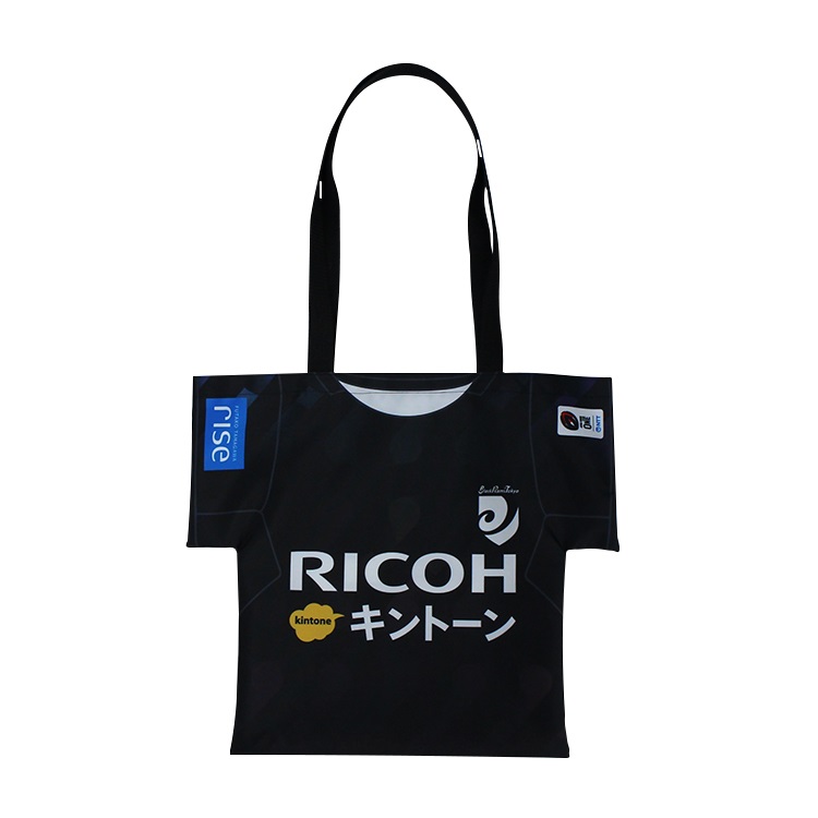 ジャージー型トートバッグは肩から掛けられる持ち手の長さで荷物の多い観戦時にもおススメです。