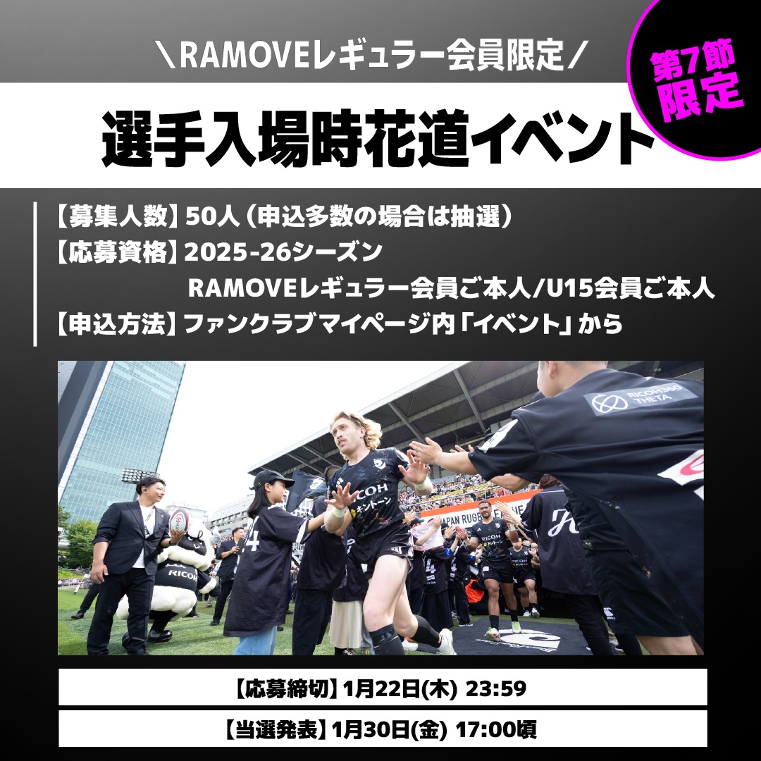 第7節 埼玉パナソニックワイルドナイツ戦 チケット販売及びRAMOVE会員限定イベントのお知らせ